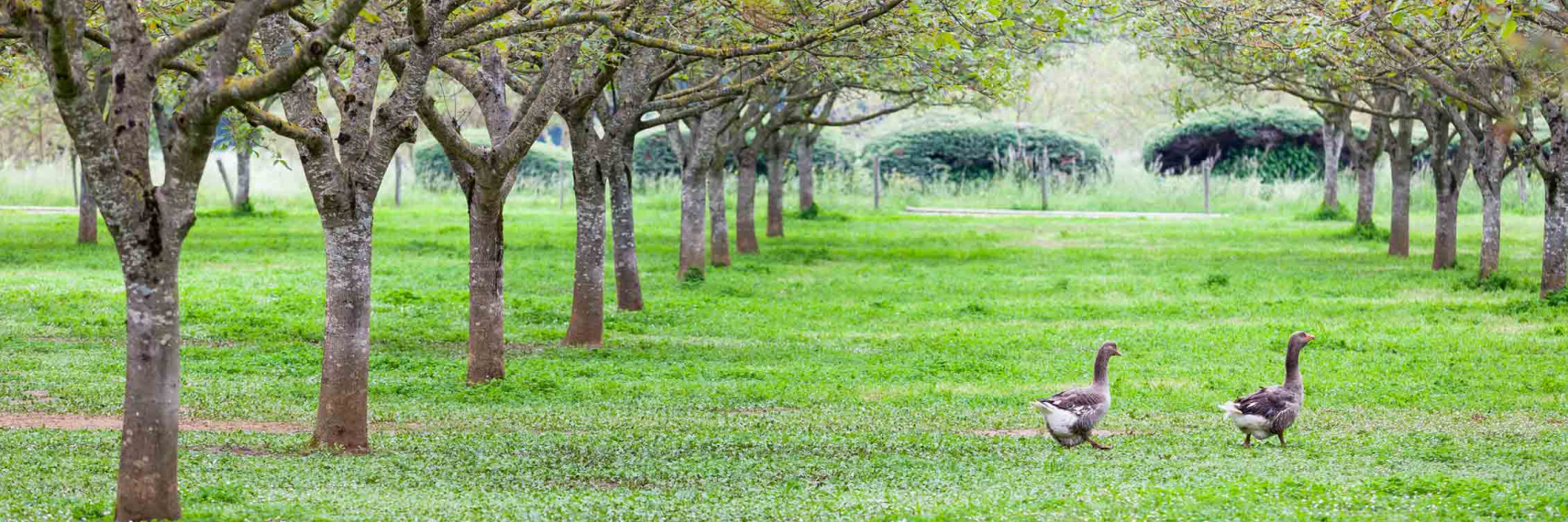 Sur 10 hectares de parcours à la Ferme de l’Oie et du Canard, le noyer est roi. Les scientifiques ont rapidement prouvé que son installation sur un élevage ne donne que des avantages. Non seulement les bêtes ont de l’ombre pour se protéger mais en plus elles ne stagnent pas au même endroit, puisque les arbres sont espacés.